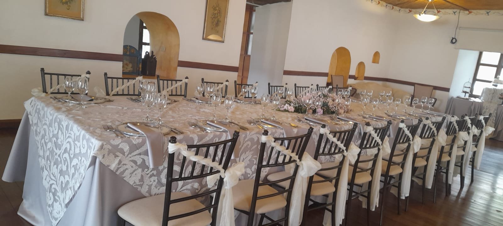 Un ambiente íntimo con la esencia histórica de la hacienda, pensado para celebraciones pequeñas y especiales.